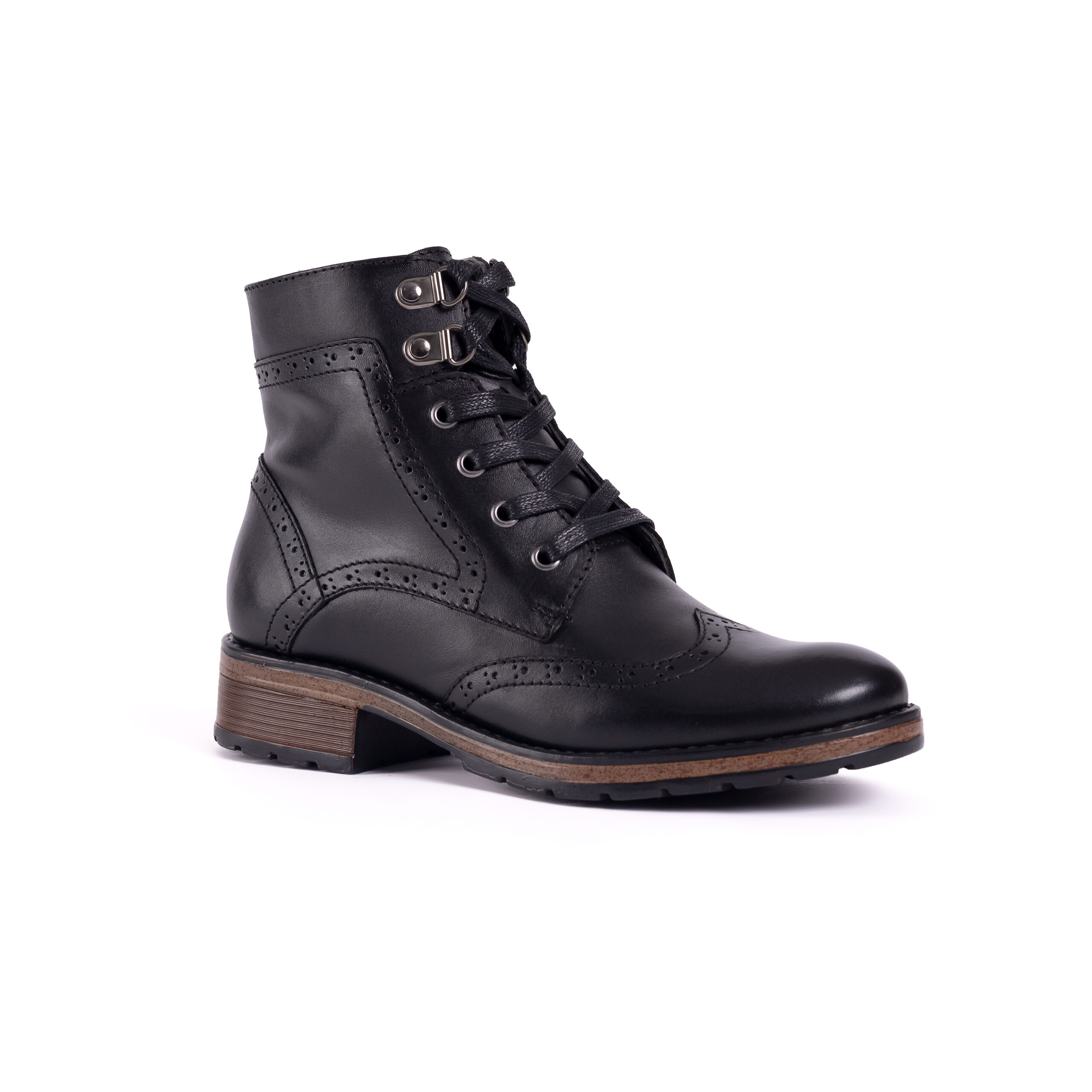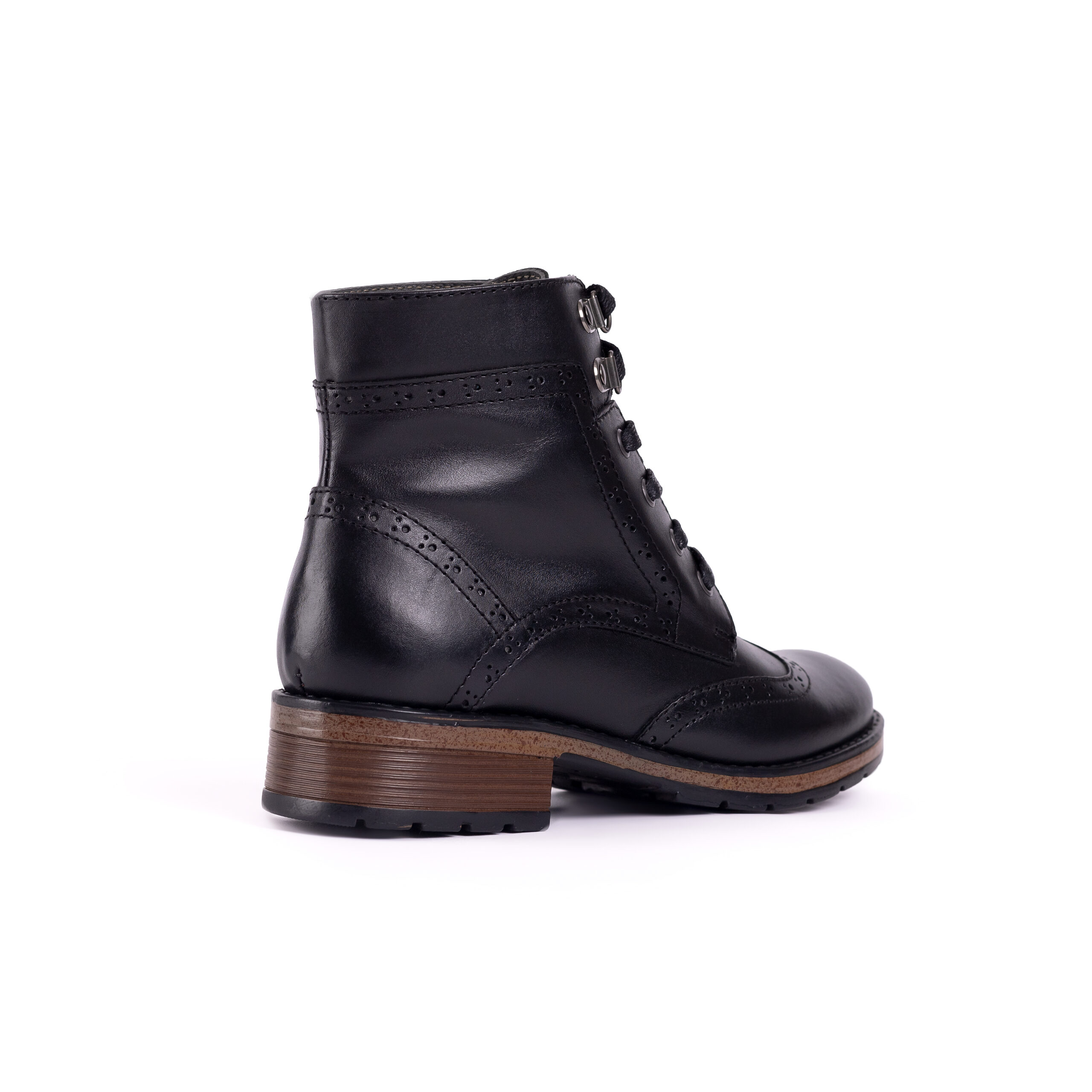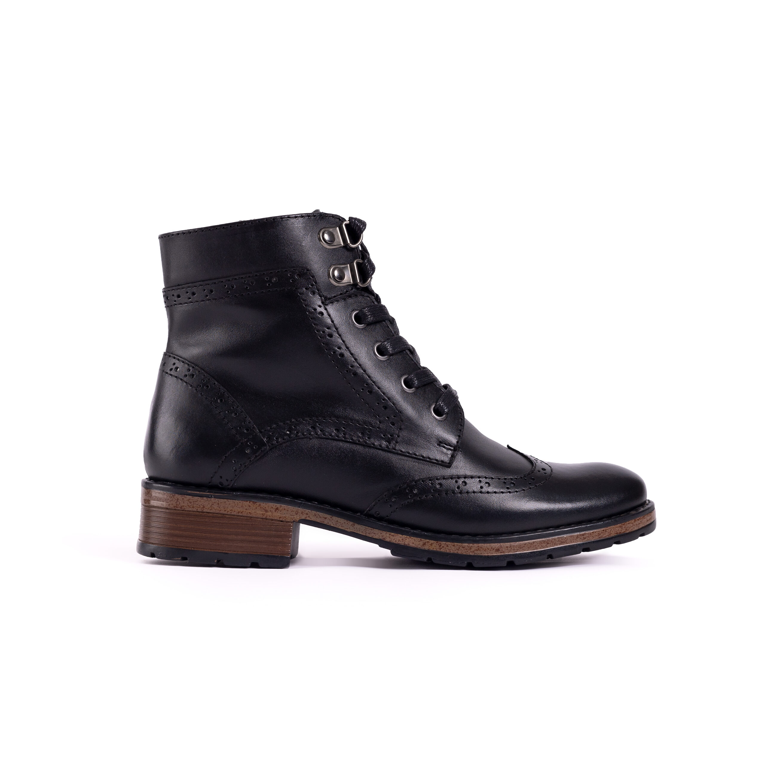 Botín hecho en cuero genuino, presenta pasadores para mejor ajuste.