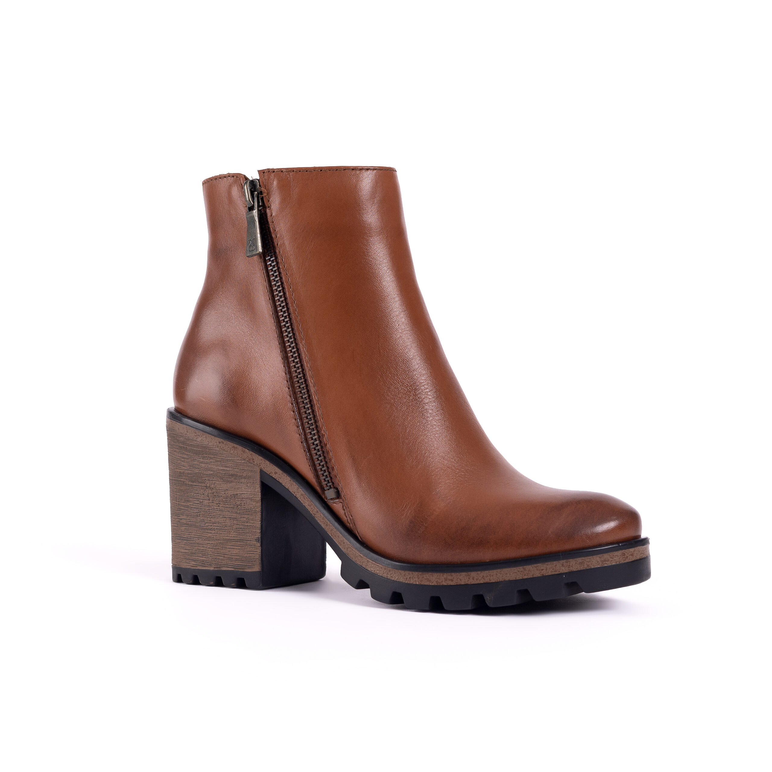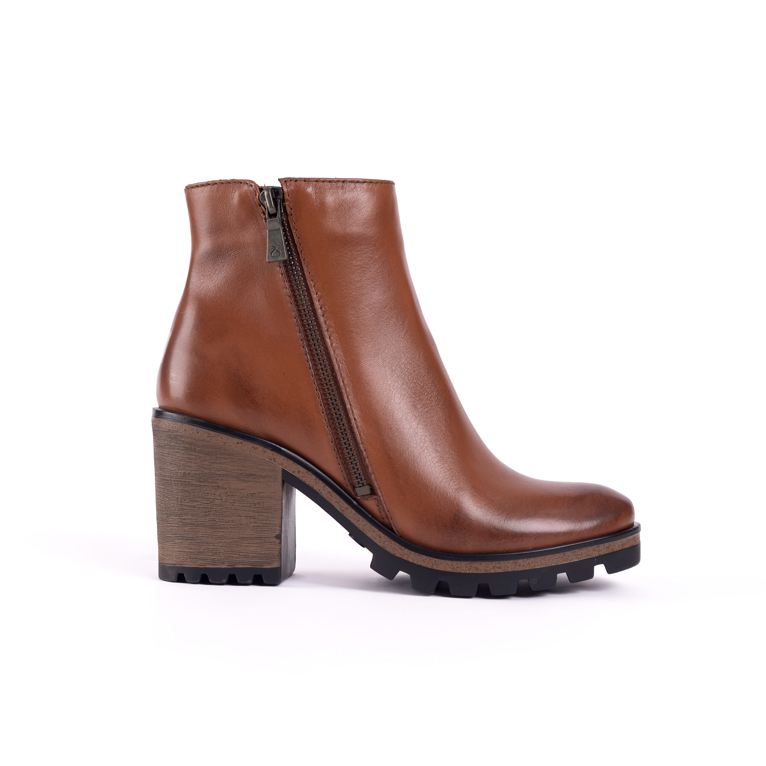 Botín hecho en cuero genuino, presenta doble cierre , uno funcional y otro fantasía.